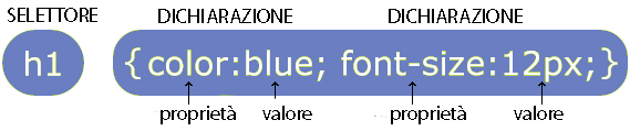 Al selettore vengono associate delle dichiarazioni definendone proprietà e valori.